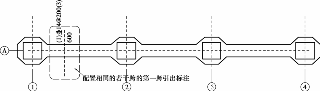 柱下板带(跨中板带)的集中标注,由编号、跨数及是否布置到外伸端、板带宽度、配筋信息组成(图7.16)。