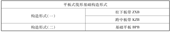 平板式筏形基础有两种构造形式:一种是由柱下板带与跨中板带组成;另一种是不区分板带,直接由基础平板组成(表7.13)。
