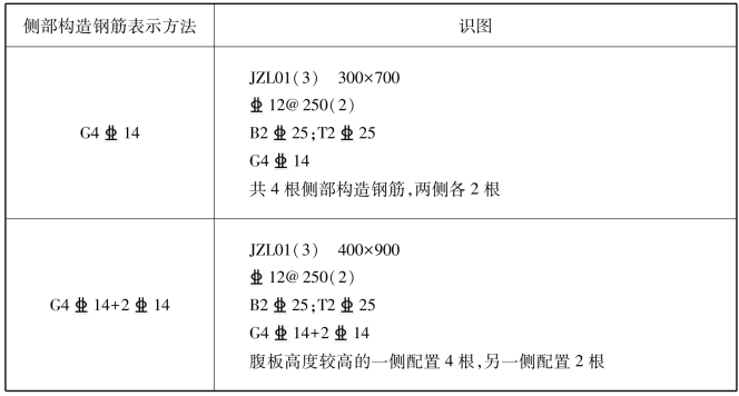 表7.7 基础主/梁侧部构造钢筋识图