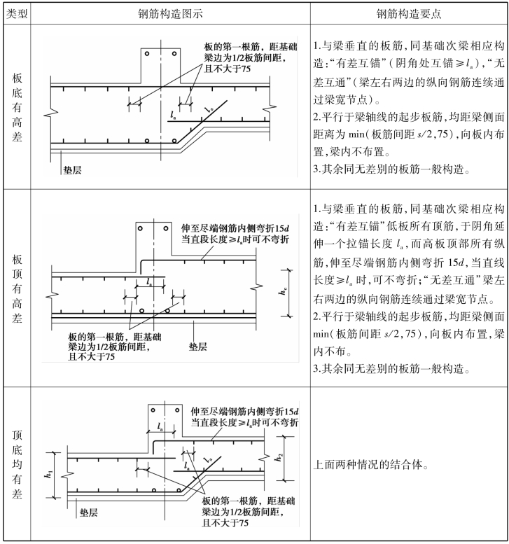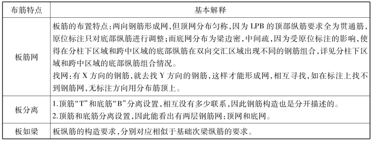 表7.23 基础平板LPB主要纵筋的布筋基本特点