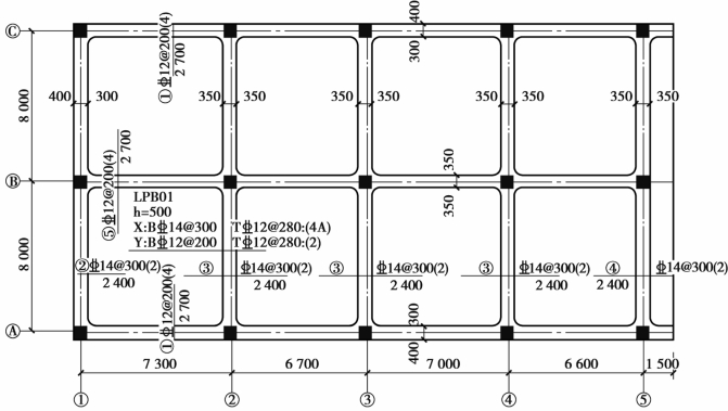 7.3.3 梁板式筏形基础平板钢筋计算实例