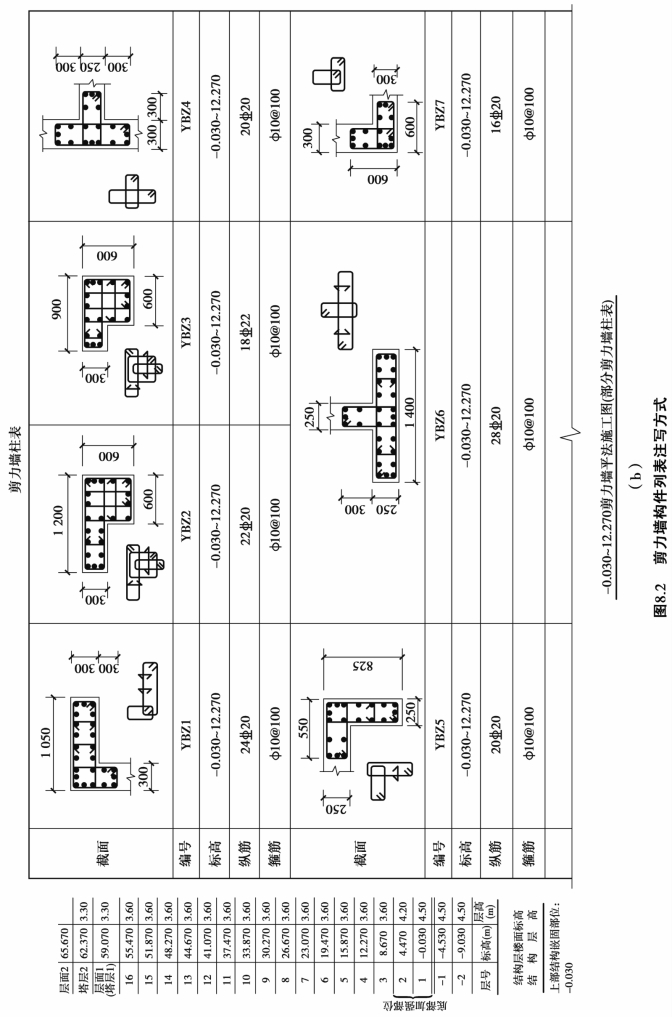 剪力墙列表注写方式识图,需将剪力墙平面布置图对照墙柱、墙身、墙梁表阅读。剪力墙列表注写方式平法施工图的组成见图8.1,注写示例见图8.2。