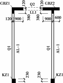 ②当某些墙身设置暗梁或边框梁时,在剪力墙平法施工图中绘制暗梁或边框梁的平面布置图并编号,明确其具体位置(图8.6)。