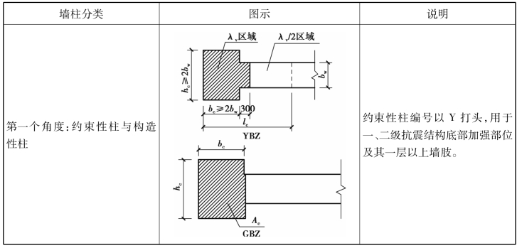 剪力墙柱表包括:柱截面形状及配筋图、墙柱编号、各段墙柱的起止标高、纵筋总配筋值、箍筋信息。平法施工图标注的lc(实际工程中注明具体数值)为约束边缘构件沿墙肢的长度。