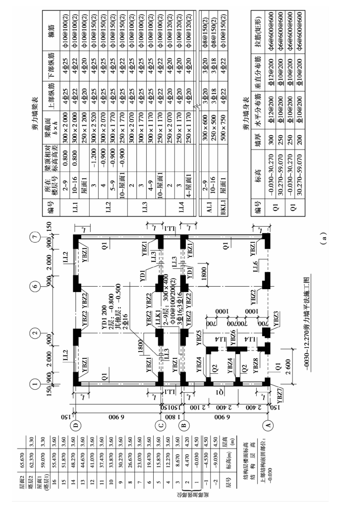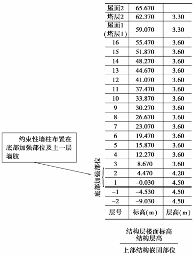 一、二级抗震设计的剪力墙结构,有一个“底部加强部位”,注写在“结构层高与楼面标高”表中,见图8.4。