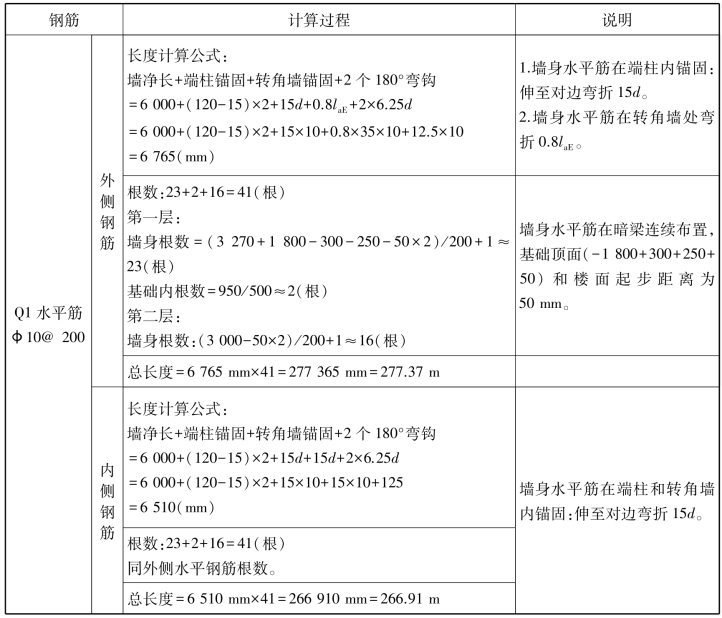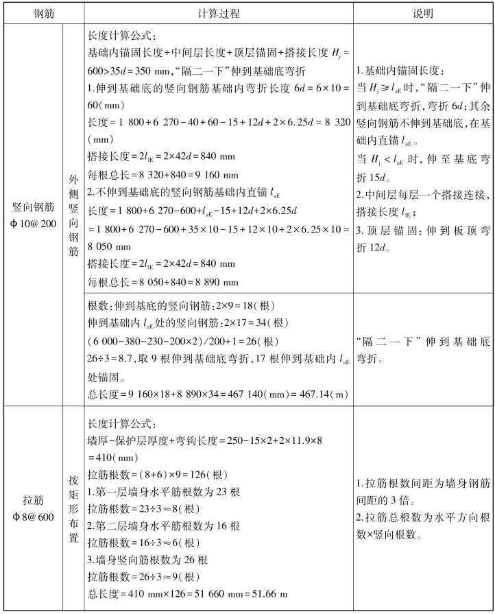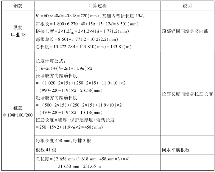 表8.34 墙柱GBZ1的钢筋工程量计算过程
