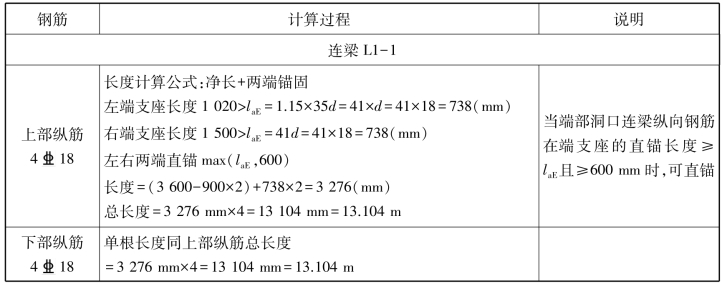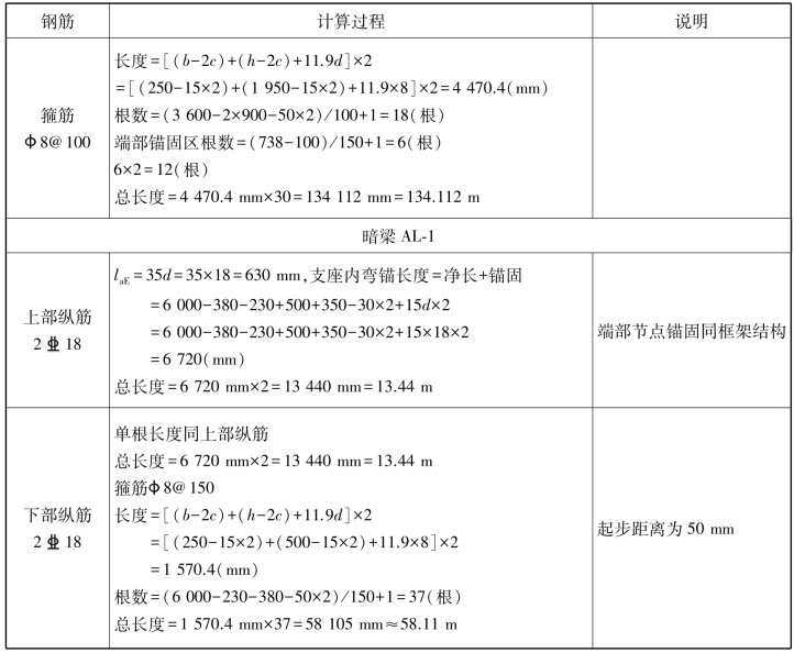 (3)墙梁L1-1和①轴线上第二层AL-1的钢筋工程量计算(表8.35)