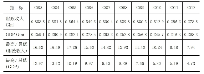 表3.4 2003—2012年省际人均财政收入差异和人均GDP差异比较