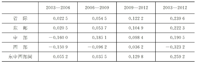 表3.8 2003—2012年不同时期财政收入区域流动性的P指数