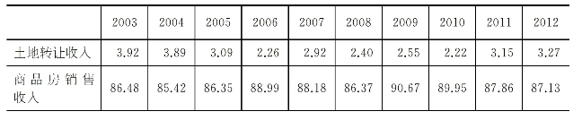 表7.3 2003—2012年房地产业各项主营业务收入的区域差异对总体差异的贡献率 单位:%