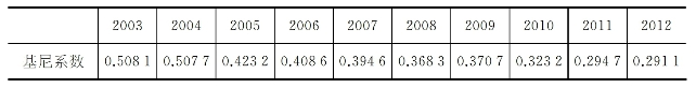 如何对房地产业的非均衡发展进行调控,我们首先需要了解房地产业营业税的区域差异现状。我们计算了2003—2012年各省之间房地产业营业税的基尼系数,如表7.1所示。