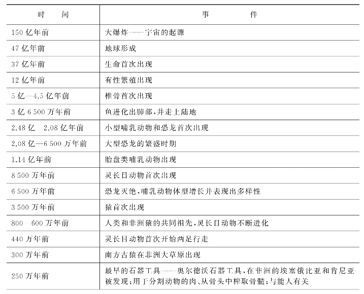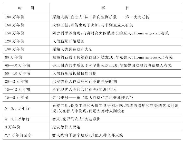 人类的大脑是逐步进化而来的,表2-1是人类进化史上的里程碑事件,我们可以从中体会人脑是如何随着人类的进化而逐渐发展的。