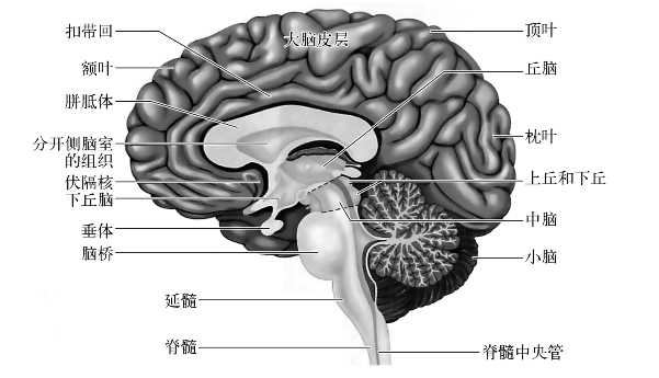 图2-2 人类大脑的一个矢状切面图