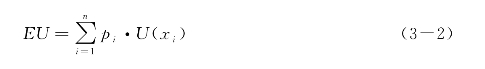 其中,pi、xi和U(xi)分别表示该行动方案的每一可能结果的出现概率、金钱价值和效用(心理价值),i=1,…,n。