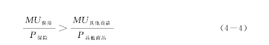 显然,只有当时,个体才会选择购买保险。式(4-4)中,左边是单位支出带来的保险边际效用,右边是单位支出带来的其他商品边际效用
