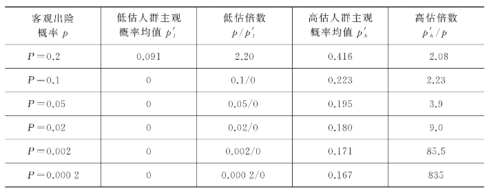表5-7 低估(高估)风险者占比随客观概率的变化