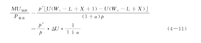 如上一章第六节提到的,当消费者无法准确评估风险时,消费者单位支出的保险边际效用计算公式为