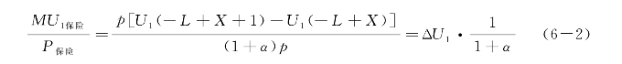 假定个体能够准确评估风险,个体评估概率与保险公司的定价概率均为p;购买保额为X时,保险公司收取的纯保费为pX,收取的附加保费为αpX,总保费为(1+α)pX。则多购买1元保额支出的保费为(1+α)p。与式(4-5)类似,不失一般性,在已有保额X基础上,多花1元购买保险带来的边际效用,即单位支出(或多花1元钱)购买保险带来的边际效用可以描述为: