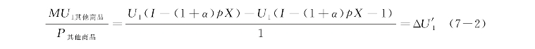 ΔU′1表示全景效用函数中单位支出的其他商品边际效用(由于参照点右侧全景效用函数与伯努利效用函数重合,因此ΔU′1=ΔU′)。