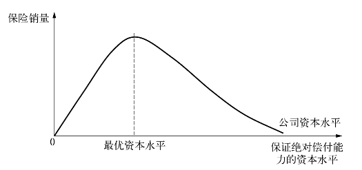 所以,在没有保险监管的条件下,保险公司的资本水平需要在两个极端之间进行平衡,理论上应该可以找到最优点,在最优资本水平下,保险销量达到了最大化。如图11-5所示。