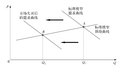 图16-3 市场失灵(需求疲弱)使市场均衡点向左移动