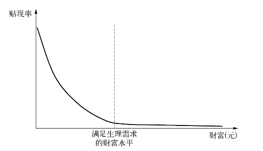 但是,对传统线下保险产品进行如本节第一部分所示的改进后,单价大幅降低了,再加上交费方式从年交改为月交,保费负担进一步降低了。而且,将期交均衡保费长期保险改为短期保险后,由于年龄越低,风险越低,保险费率越低,保险费率看起来似乎更低了。最终,不少保险产品月交保费只有10元、20元或100左右。对边缘群体来说,这笔支出几乎不会使其财富降至低于“满足生理需求的财富水平”的水平,交纳保费不会影响其刚性支出。从理论上来看,这笔小额保费支出不会触及图7-9“满足生理需求财富水平”垂线左侧客户贴现率很高的地方,保险边际效用几乎不会因贴现率过高而大幅降低。