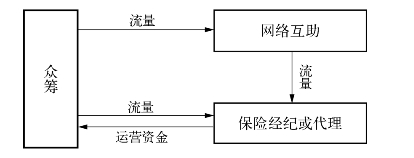 在上述三类业务中,众筹是低手续费或零手续费的,网络互助可以收点手续费,但通常仍属于公益性质,只能追求收支平衡。由此,能够提供重大商业利益的就只有商业保险了。好在,由于商业保险的弱需求性,保险销售费用的行情一直处于较高的水平,于是,众筹公司通过拿到保险经纪或保险代理牌照,就可以通过销售商业保险获得高额手续费了,如果能用这些手续费来覆盖保险经营成本和众筹经营成本并有盈余,就可赚到利润。三类业务的流量和资金流向如图18-1所示。