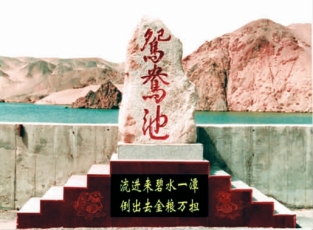 鸳鸯池水库,也叫鸳鸯湖。位于金塔县城西南8 千米处的夹山峡谷中,是全国最大的土筑坝水库,国家AAA 级水库风景名胜区。它与下游5 千米处的解放村水库(金沙湖) 一山之隔,一脉相承,人们称其为“母子湖”。碧波清流滋养万顷良田,珠联璧合绽放异样光彩。它们与金鼎湖、西湖生态公园、清泽溪一道构成“四湖一溪”景区,为金塔大地平添了许多灵动和魅力,被誉为金塔新八景之一。