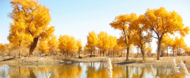 胡杨是最古老的一种杨树,在一亿三千多万年前就开始在地球上生存,属落叶乔木,是一种沙漠化后而特化的植物,大多是野生,被人们誉为“沙漠勇士”。胡杨林是一种神奇的群体,它们耐寒、耐热、耐碱、耐涝、耐干旱。胡杨生长期漫长,由于风沙和干旱的影响,很多胡杨树造型奇特、诡异,是一种神奇的自然景观和独特的人文景观,堪称大漠中的一颗绿色明珠,胡杨永远用那“生——千年不死,死——千年不倒,倒——千年不朽”的精神诠释着生命的伟大。粗壮、沧桑的主干掩映在金碧辉煌的枝叶之中,满目的赤橙黄绿与盈盈秋水互相映衬,构成了一幅五彩缤纷的世界。