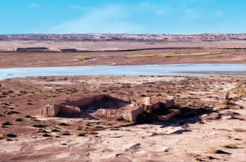 地湾城位于航天镇东岔村西南11 千米处黑河东岸戈壁滩上。东距金关长城203 米。北距肩水金关遗址500 米。