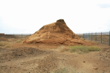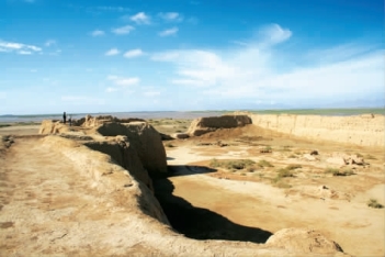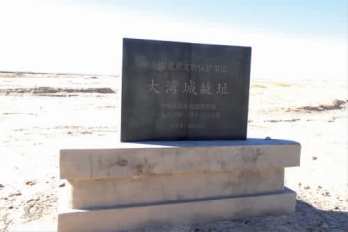大湾城故址,古时东西两城,依山傍水,遥相对峙。历来为兵家兵戈相争之地。1930 年,前西北科学考察团在此发掘出汉简1500 余枚以及西夏文的印版文书和西夏文的丝绸各一件。1972 年,甘肃省居延考古队又在此发掘出汉简数百枚和部分珍贵文物。