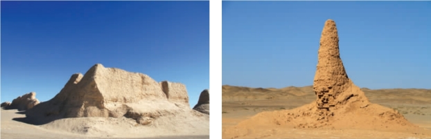 居延遗址金塔境内现遗存“一关(肩水金关) 三城(东大湾城、西大湾城、地湾城)”和92 千米长城段以及长城沿线59 座烽燧。1930 年、1974 年和1986 年西北科学考察团、居延考古队和省文物考古研究所对居延遗址进行了三次考古发掘,共获汉简3 万余枚,其中金塔境内出土汉简近2 万枚。这些简牍,既是珍贵的历史文物,又是研究我国古代史十分重要的资料,它有着不可低估的学术价值和多方面的重要意义。大湾城、地湾城、肩水金关古址,除肩水金关因自然破坏严重,现仅存一烽台外,大湾城、地湾城保存较为完整,特别是东大湾城基本保持原状,为研究汉代边塞地区军事防御设施的规模、布局、结构及建筑方法提供了实物依据。