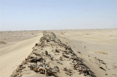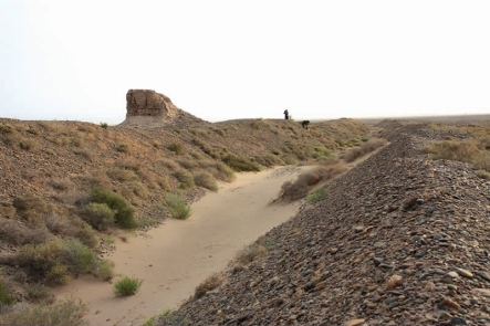 道路,是烽燧、坞障之间的系带,是长城防务体系当中最不可缺少的一部分。如果说障塞烽燧是武士身上所穿的甲片,军用道路则是将这些铁片连接的系带。兵马未动,粮草先行,在修建长城时也得遵循这个道理,长城沿线的道路应该是率先开通的。因为,众多修筑长城的人员分布在长城沿线的广阔地带,他们的给养运输不得缺少,这就要求道路畅通。当长城防御体系初步完成之后,为满足大军出塞以及传递情报等方面的需要,也势必要对道路的平整和畅通提出更高的要求。从居延汉简的材料中可知,修筑道路并保证其畅通无阻,是戌卒的重要职责之一,在当时,设有专职筑路养路的士兵,称为“除道卒”。金塔境内镇朔墩一带的长城沿线还遗留有当时的道路遗迹。