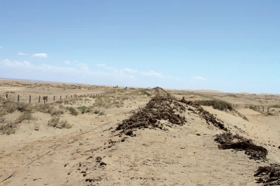 该区域属温带干旱气候,降雨量小,蒸发量大,年均降水量59.9 毫米,蒸发量为2538 毫米,干热风和风沙为主要灾害性天气。
