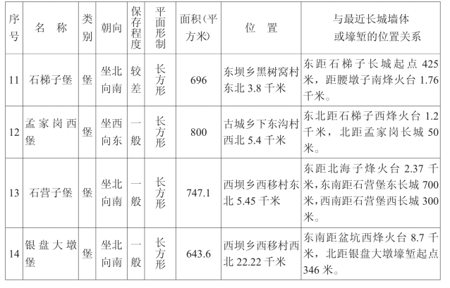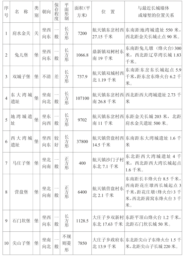 金塔汉长城沿线关堡一览表
