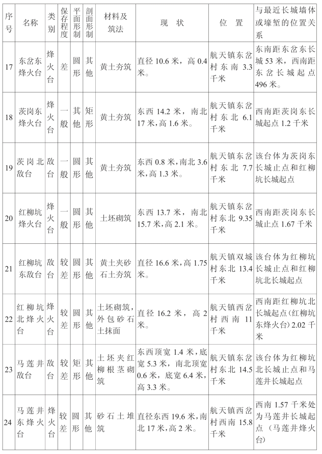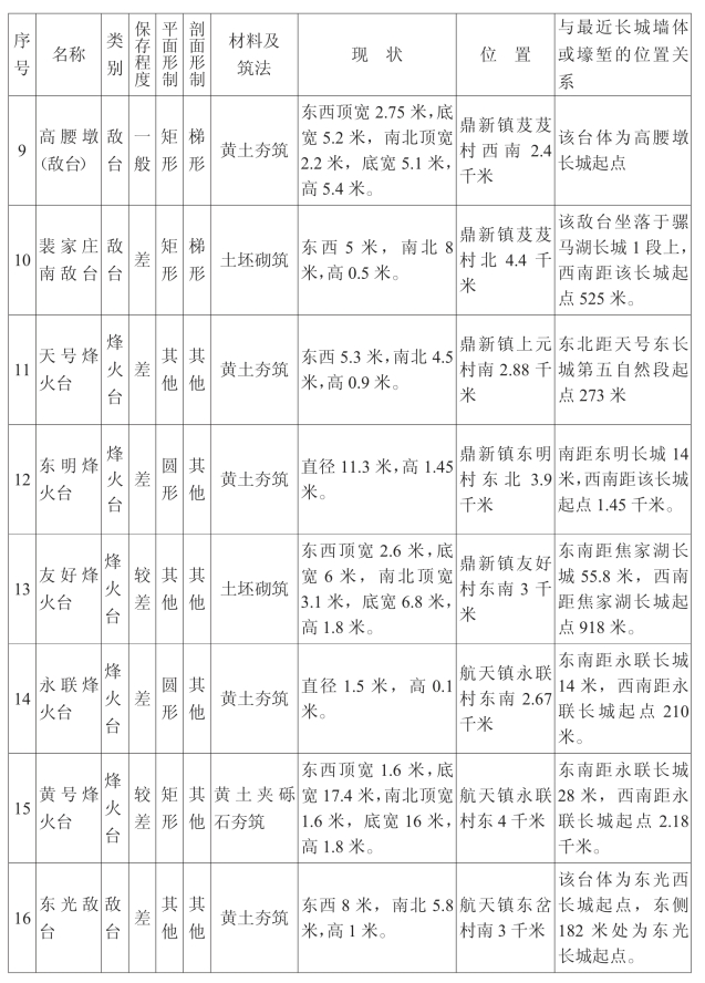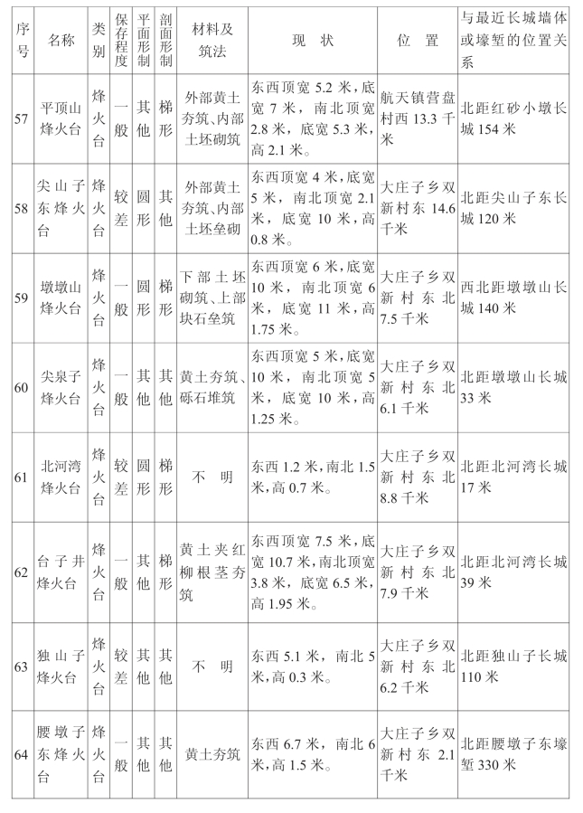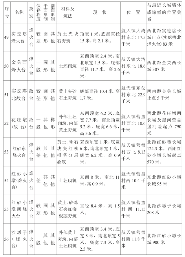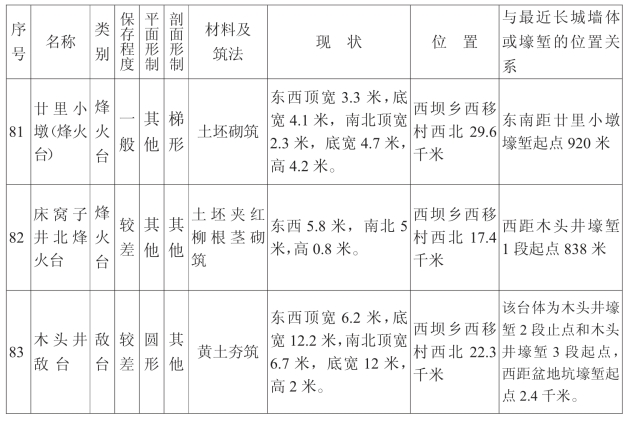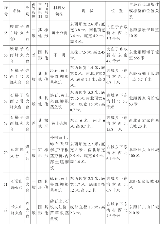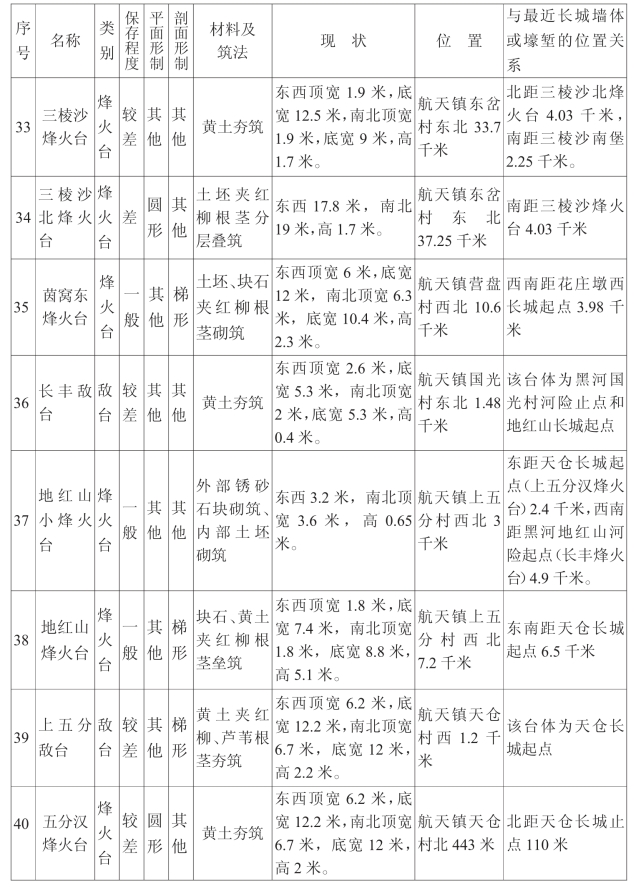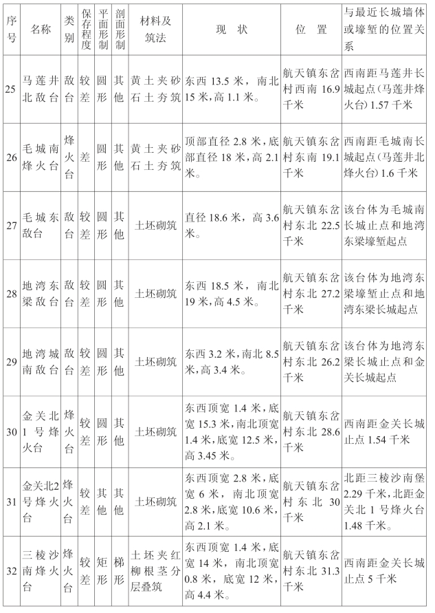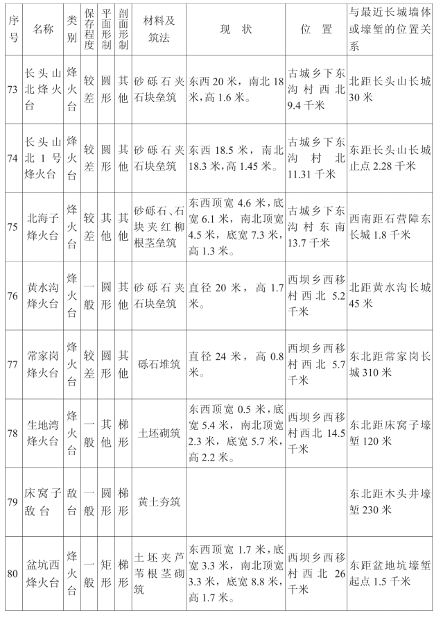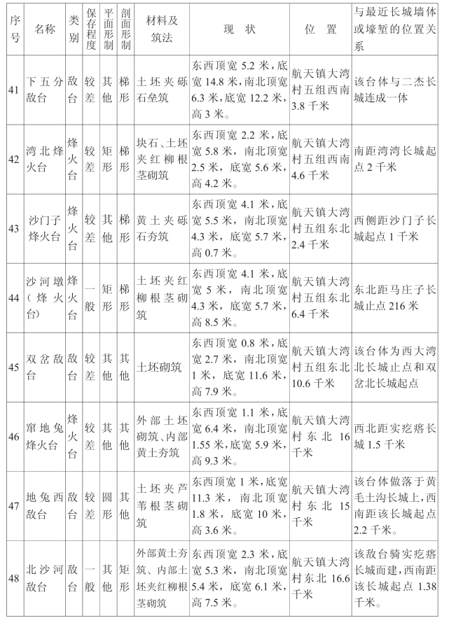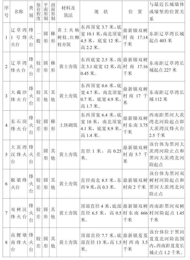 金塔汉长城沿线单体建筑一览表