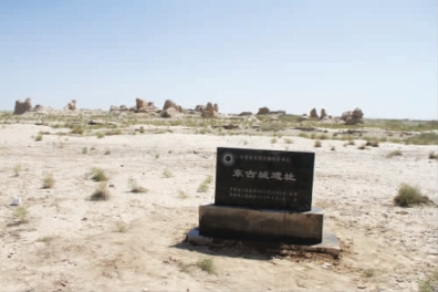 东古城,又称“破城”。位于本县羊井子湾乡双古城村东北3 千米处的沙漠中,东经99°07′07.2″,北纬40°05′15.4″,海拔1225 米,西南距县城23 千米。