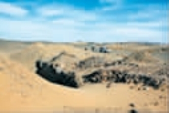 早在1987 年全县文物普查中,在金塔县大庄子乡头墩村九组东北14千米处,距县城东北约40 千米的戈壁沙漠中就发现了一处青铜冶炼遗址—火石梁遗址。遗址东西长350 米,南北宽270 米,面积约9.5 万平方米,地表遍布夹砂红陶片、彩陶片和少量细泥红陶片。远眺,整个遗址如烈火通红,故名为火石梁。普查时发现和采集有陶器、石刀、石勺等。石器通体磨光,制作精细,陶器有精细的几何花纹,属四坝文化类型,距今约3600 年左右。遗址内东北部直径约30 米的灰堆中有大量的炭结块、孔雀石和碎铜片,文化层厚度为0.3 米~2.2 米,并出土有类似冶炼工具坩埚的两把石勺。充分证明,这是一处青铜时期的陶器烧制作坊和青铜冶炼场遗址。也说明了金塔县古铜矿开采的矿石就是在此处冶炼加工的。在遗址中发现了诸如陶质双耳罐、簇形纽盖、单孔、双孔石刀等生活用品和生产工具,充分说明了当时当地人们已经进入到了金石并用的时期,他们已掌握了简单的冶铜术。