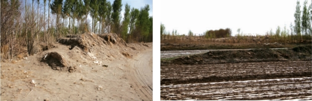 西古城遗址风蚀严重,残破甚厉,仅存残迹。据1987 年文物普查记载,该城为内外两层,平面略呈方形,内城南北长80 米,东西宽76 米,墙基宽5 米,顶宽2 米,残高2 米~6 米。西北角有角墩,南北长15 米,东西宽8.5 米,残高2.5 米。外城南北长100 米,东西宽88 米,墙残高2米。城墙均系夯土版筑,夯层厚0.1 米~0.13 米,均南面开门。内城南墙外侧中部有窑址1 座,平面呈圆形,直径2.5 米~3 米,残高0.5 米,窑室被残砖、灰土填实,结构不清。城内地表遍布灰陶片。当属魏晋时期之遗存。