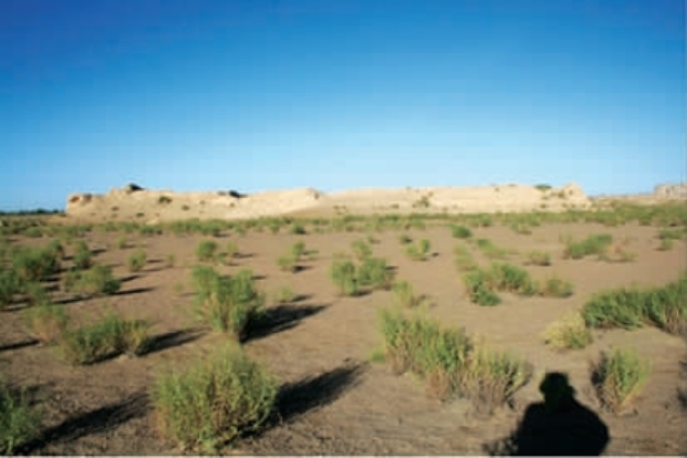 营盘堡,位于航天镇营盘村东北2.1 千米处黑河西岸的风蚀台地上。西南距花庄墩(烽火台) 3 千米,西北距茵窝墩烽火台3 千米。