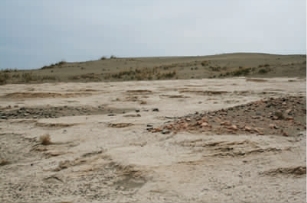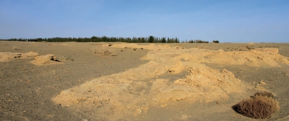 地窝墩南窑址群 位于东沙窝地窝墩南,面积约6000 平方米,发现窑址3 座,一字型排列。其中1、2 号窑为长方形,长2.5 米~3 米,宽2米左右,残高约1 米,火门向东北,已残破,窑内被破砖碎瓦填实。周围散布大量带釉瓦片残块和陶片。据考,为汉代烧砖窑址。