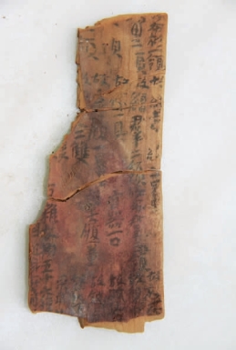 到了汉朝初年,古墓中又出现了一种不同于“遣策”的简牍,学者或称之为“告墓牍”,或名之曰“告地下官吏文”,有的学者也叫“告地策”。“告墓牍”与遣策虽然存在着渊源关系,但遣策仅是随葬物品的清单而已,而“告墓牍”虽然也有随葬品清单的作用,但已不像遣策那样详细地罗列随葬物品,具有了鲜明的宗教含义。这反映了在西汉前期,从战国以来单纯记录随葬品目录清单的遣策中,逐渐发展出一种希望通过地上和地下两个世界的官吏之间的行政手续移交,可以使死者在冥界过着与生前同样生活的观念。“告墓牍”实际上被当作一种冥界凭证,用以保障亡灵在冥界正当通行、居留和占有财物的权利。这一时期,在记录随葬物品内容颇为广泛的“赗方”与“遣策”的基础上,专门的“衣物疏”“物疏”“小物疏”等出现。在汉代的“衣物疏”中,并没有战国时期那种“赗方”与“遣策”的严格区分,而是融合了二者,而且所记也主要是衣、被一类。根据考古结果,汉初“物疏”记录的内容也有所变化,在汉武帝以前各墓出土的物疏简牍(即登记随葬物品的简牍) 均出于棺外,如头箱、边箱内,而武帝以后各墓物疏牍均出于棺内。究其内容,出于棺外的物疏简牍记录内容比较全面,包括椁箱及棺内的随葬品;而出于棺内的物疏牍所记内容仅限于棺内,棺外椁内的随葬品则不予记录。这种差别可能是当时葬俗变化的一种反映。武帝以前实行单人葬,墓中棺内外的随葬品均为墓主一人所有;而武帝以后,出物疏牍的墓多为合葬墓,棺内随葬品为个人所有,而棺外随葬品可能为合葬者共同享有。所以把物疏牍放入棺内只记录棺内明确属于墓主人的随葬品应是基于对合葬的考虑,即棺外椁内的随葬品非一人独有,应为墓内合葬者共享之物。这件衣物疏因棺木腐朽损毁严重,无法判断其是在棺内还是棺外,但从书写内容看应为一人随葬衣物。随着人间社会土地买卖的盛行,约从东汉开始,又流行一种在墓中放置“墓莂” (俗称“买地券”) 的习俗。就是模拟人间土地买卖的契券格式,虚构向神灵购买坟墓地权的契券,这种契约多数是刻在长方形的铅板上,也有的刻在玉板或书写在铁板、陶柱、青砖和石等物之上。待到东汉中后期,出现了在幕中放置一种陶质的“镇墓瓶”,瓶内有时还盛放朱砂、雄黄、水晶等物,瓶上有朱书文字和附录,当代学者称这种文书为“镇墓文”或“镇墓解除文”。镇墓文的主要内容为解殃文辞, 其作用是以文告的形式,告诫地下鬼怪不能对死者进行侵扰,以便使生人家宅安宁。死者冢墓稳定,以“天地使者”的名义为主人解罪,为死者求福,安慰并约束亡灵,使其认识生死有别,勿事纠缠。反映了早期道教的思想。汉代宗教神秘感趋于强烈,巫风兴盛,不但新出现多种源于方术迷信的丧葬文书,而且遣册也向巫风靠近。遣册原有的纪实功能似有退缩的趋势,其表现一为出现虚随葬物品的现象;二为所记物品渐专注于随身衣物,亦即由“器疏”向“衣物疏”转化。