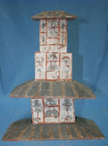 本次清理共出土遗物21 件,其中陶器3件,弦纹灰陶罐、灰陶灶、灰陶甑各1 件;棺画1 副,棺盖内侧并排画着5 幅动物画像,有马、羊等动物形象;木牌楼1 个,上下共有三层,6 幅画面,内容为人物和松鹤;木版画11 块,画面内容以人物和松鹤为主,一块木板用白、黑、黄三色画一白虎形象,昂首张口;带绳木塞1 个;五铢钱2 枚;粮食标本1 份,在旋纹灰陶罐中保存有糜子颗粒,已严重钙化。衣物疏1 件,该衣物疏为一长方形木牍,已残缺不全,字迹模糊不清,所书文字从木牍右上角起头竖写,残存七行。依稀可辨有墨笔书写的“故布衫一领”“故纑群(裙) 一领”“故□器一口”“故丝□□一量”“故□履一量”“二双”“故□衣一具”“杂衣物五十六种□”等字。据此推断,这可能是墓主人随葬物品的清单,即“衣物疏”。此衣物疏在金塔汉晋墓葬中首次发现,实属罕见。