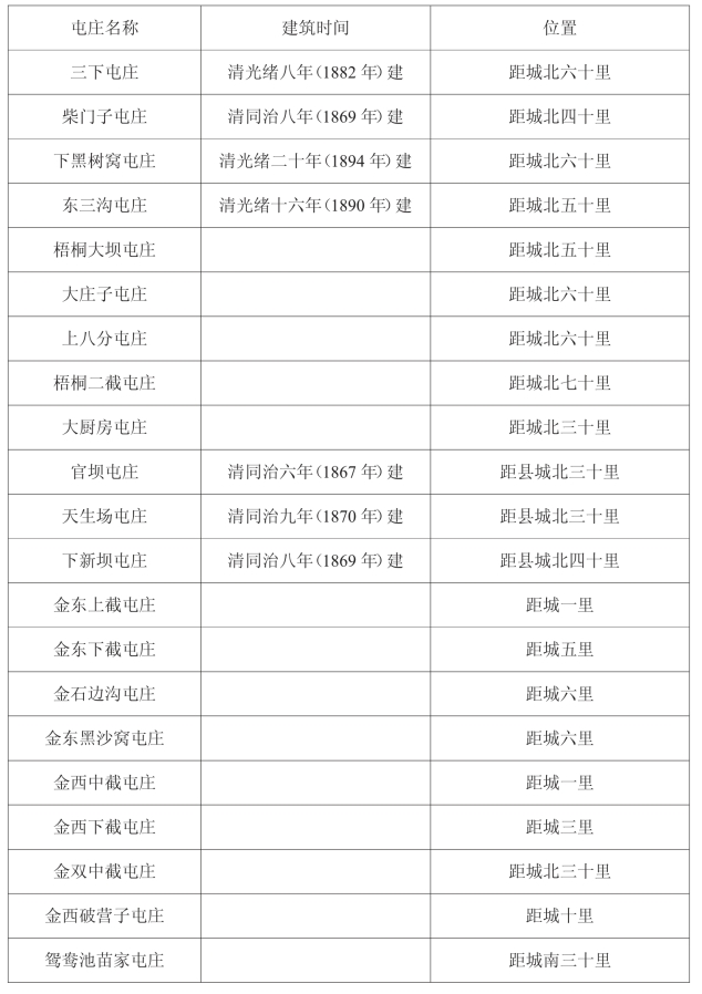 金塔县清代—民国时期屯庄一览表