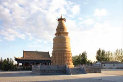 塔院寺金塔,位于金塔县城东南2.5 千米的塔院寺内,塔与寺合称金塔寺或塔院寺。塔势雄伟,寺貌壮观,构成一幅神奇迷人的画景。明、清时被列为肃州八景之一,民国时又将它列为金塔第一景,金塔县县名由此而来。因此,金塔县也成为全国唯一一个以塔命名的县。