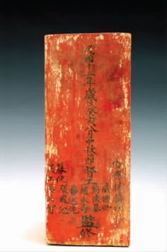 但据1987 年从塔顶内出土的4 块维修木牌证明,金塔的维修时间分别是康熙四十六年(1707 年),乾隆四十三年(1778 年),道光二十五年(1845 年) 和民国十二年(1923 年),《修编金塔方志》中记载的时间可能是维修寺庙的时间。