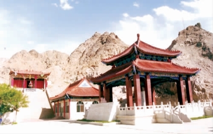 青山寺,位于县城西南12 千米处,居鸳鸯池水库东侧的山顶幽谷之间,东经98°50′15.2″,北纬39°54′18.6″,海拔1351 米。重岩叠翠,风光秀丽,是历史名胜古八景之一。