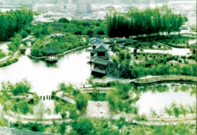 金塔公园位于金塔县城中心地带,今航天广场所在地。1990 年5 月,开工建设,1991 年5 月竣工。工程总投资127 万元,金塔县干部职工、金塔籍在外地工作的领导干部、在金塔县工作过的老领导、建筑施工企业等社会各界人士为金塔公园建设捐款捐物折合人民币70 万元,县城各单位干部职工、学生、驻军义务劳动工日1.5 万个。