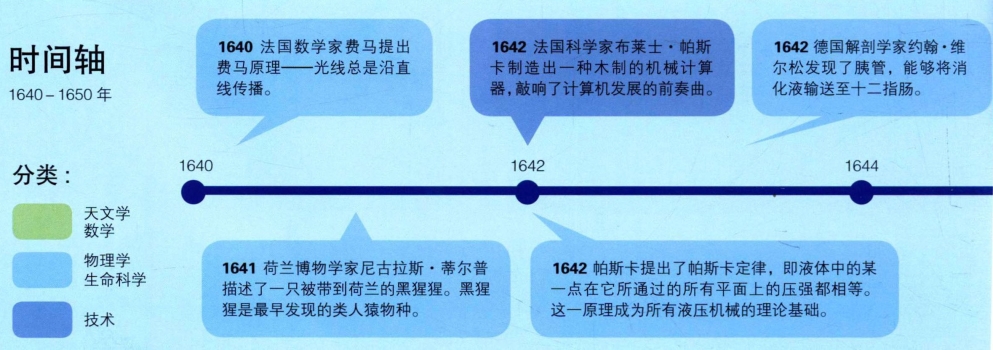 1667年,牛顿获得奖学金后重返三一学院,并在1669年成为一名数学教授。他努力观察着物体运动时发生的一切变化,究竟是什么让物体开始运动,又是什么让物体停止运动?他的这些发现被总结成牛顿三大定律(见36页)。这些运动定律很容易被观察到,即使是一个普通人玩一场台球游戏也能观察到。