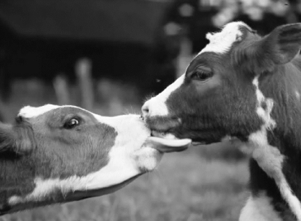 (4)触觉:牛通过触觉来判断它们所处的环境,坚实有力的接触往往能使牛群平静下来。这就解释了为什么当他们进入保定夹之后会停止挣扎。轻拍可能被误解为击打,这些轻微的接触可能会使牛发痒或害怕,最好要避免。牛是群居动物,它们会因感觉到周围有其他同类而得到心安,尤其是在1m 范围以内。牛对某些不舒服的接触会产生联想,所以避免暴力或骚扰性的触摸。